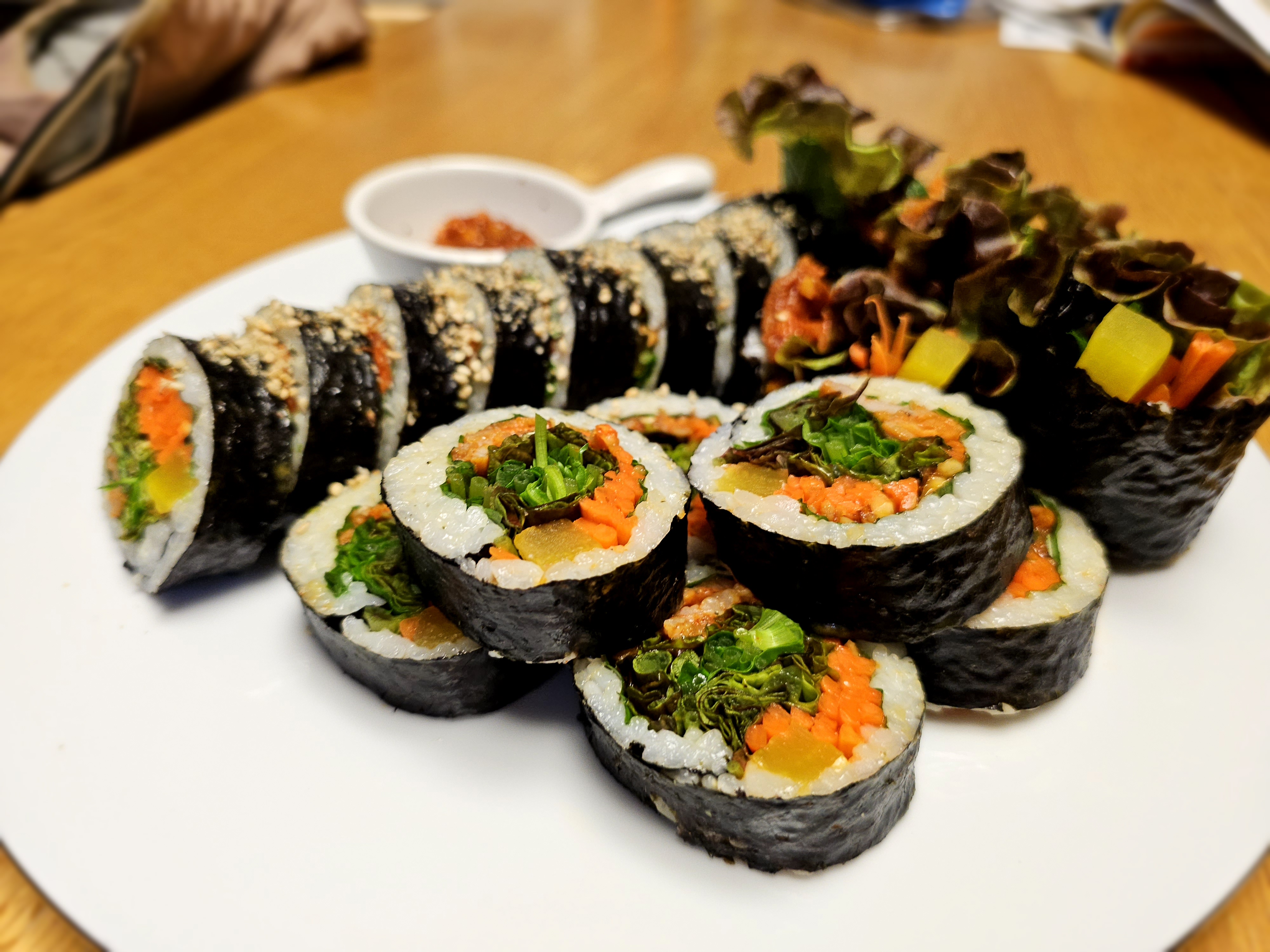 건강식을 따지다 보니 안 먹던 샐러드도 챙겨 먹고 샐러드가 질리면 쌈 채소로 대체해서 먹고 있어요. 단백질은 생선과 기름기가 적은 육류 부위 위주로 먹고요. 무엇보다 저염, 저당을 따지고 있어서 기존에 먹던 간장과 흰색 가루는 모두 처분하고 대체 감미료를 쓰고 있어요.